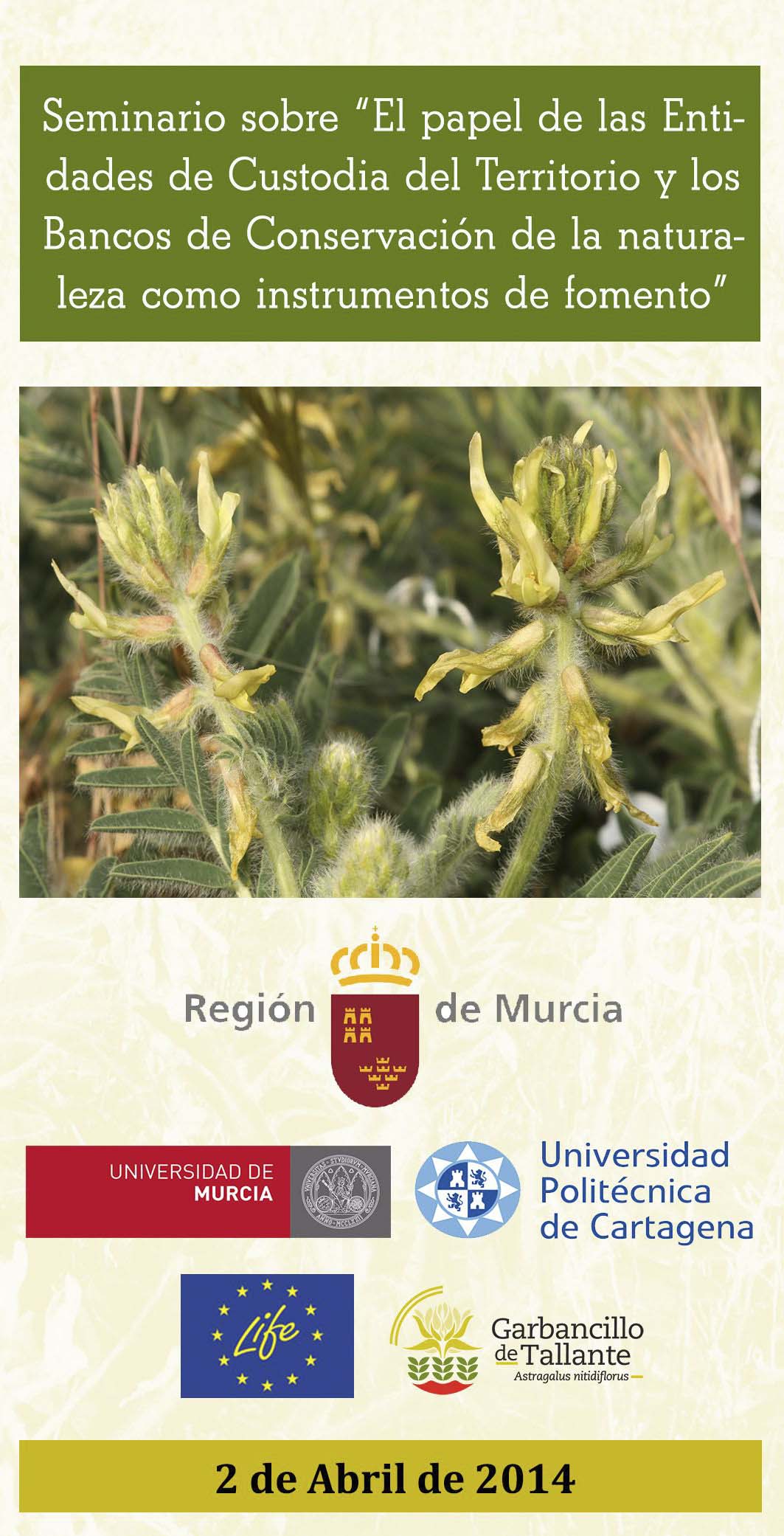 El 2 de Abril de 2014, con motivo de la Acción E7 del LIFE11 BIO/ES/727 se celebró el Seminario "El papel de las Entidades de Custodia del Territorio y los Bancos de Conservación de la Naturaleza como instrumentos de fomento" en la Facultad de Derecho de la Universidad de Murcia. Al acto acudieron más de 90 asistentes, conformados principalmente por alumnos universitarios, profesionales de diversas disciplinas relacionadas con el medio ambiente y colaboradores de diferentes asociaciones conservacionistas. Además el seminario se retransmitió en streaming a través del canal de youtube del Garbancillo de Tallante, aumentando de esta forma su alcance y difusión. Leer más ...